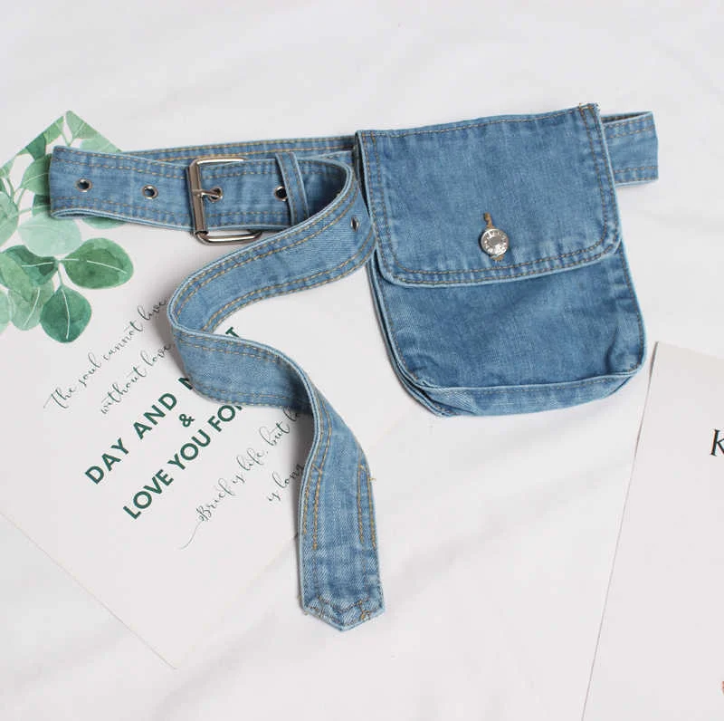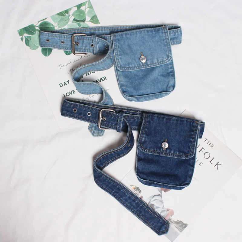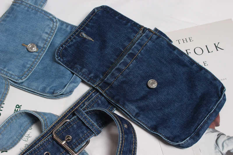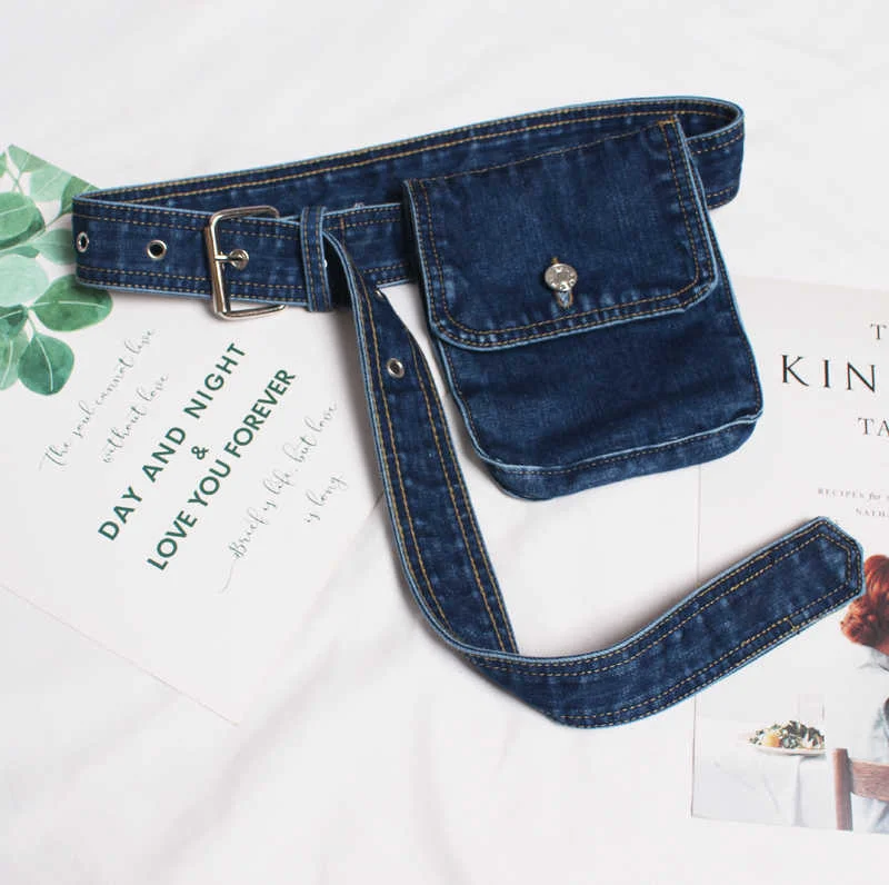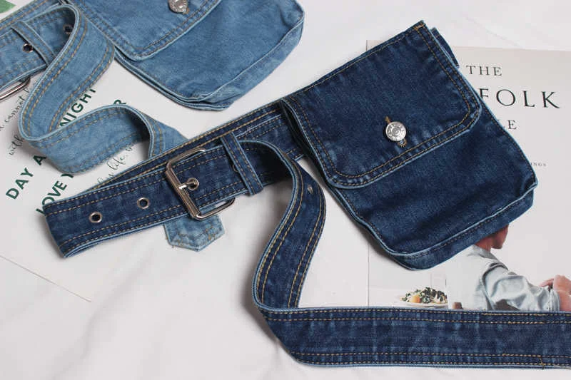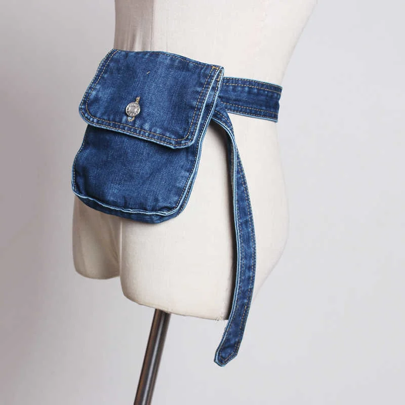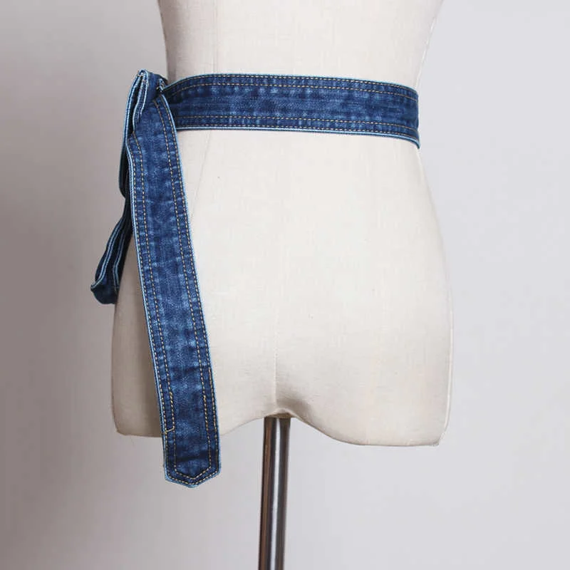 Blue Denim Pocket Split Joint Wide Long Belt Personality Women New Fashion Tide All-match Spring AutumnBlue Denim Pocket Split Joint Wide Long Belt Personality Women New Fashion Tide All-match Spring Autumn