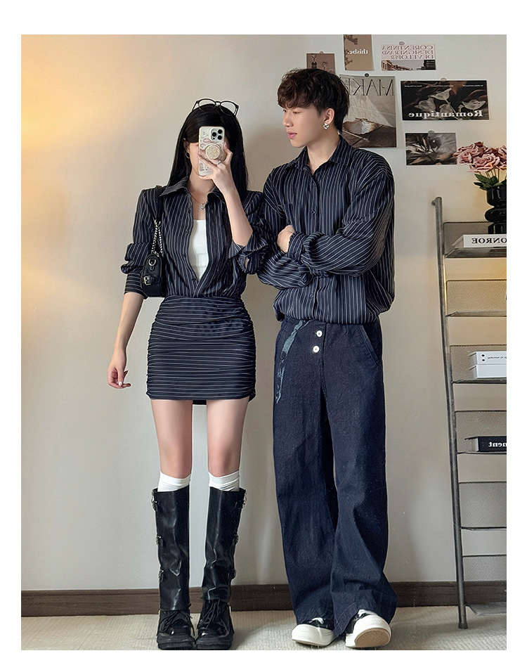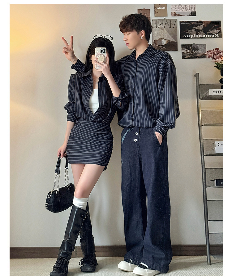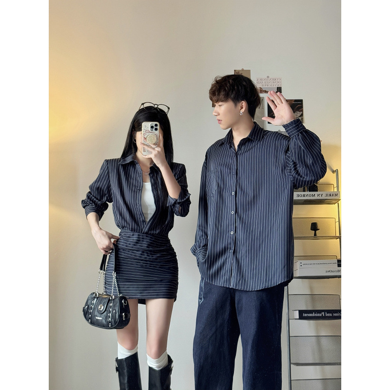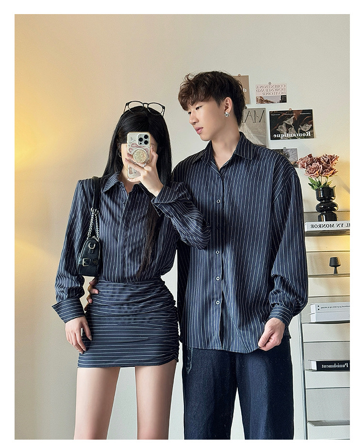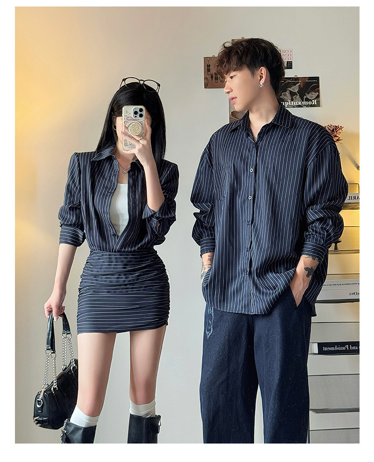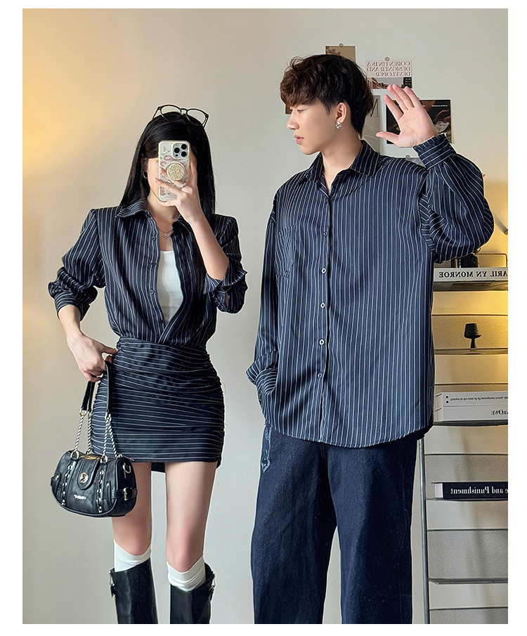 Couples' Autumn Long Sleeve Striped Shirt Dress, Unique Design, Casual Office Wear, Striped Shirt DressCouples’ Autumn Long Sleeve Striped Shirt Dress, Unique Design, Casual Office Wear, Striped Shirt Dress