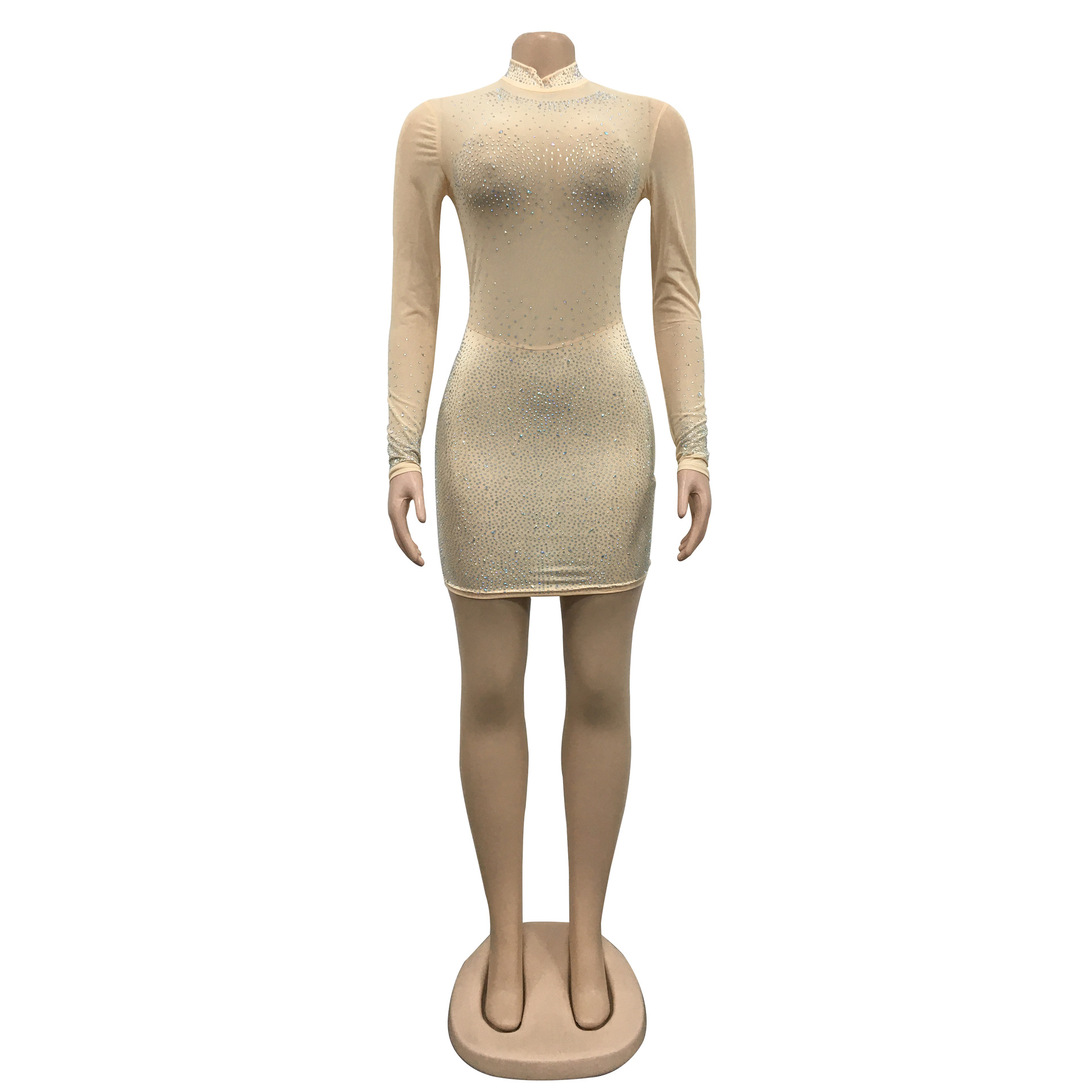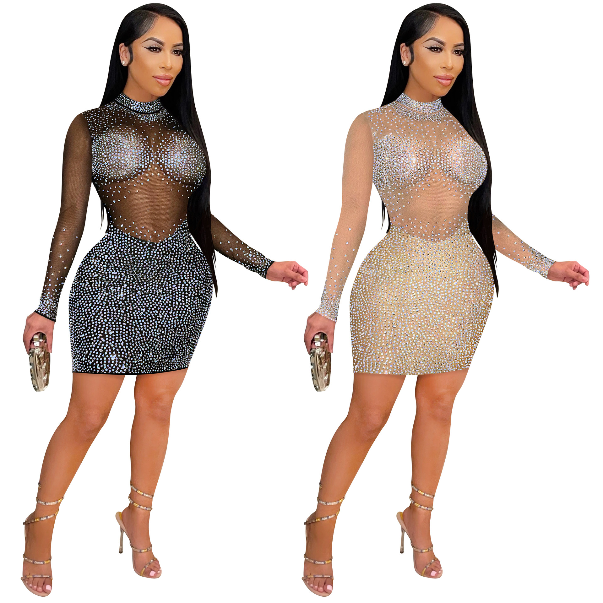 Fashion Sexy Club Glitter Mesh Sheer Long Sleeve Dress