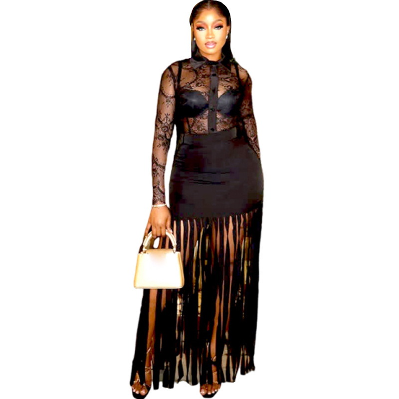Sexy Mesh Sheer Top & Long Dress Set for Women