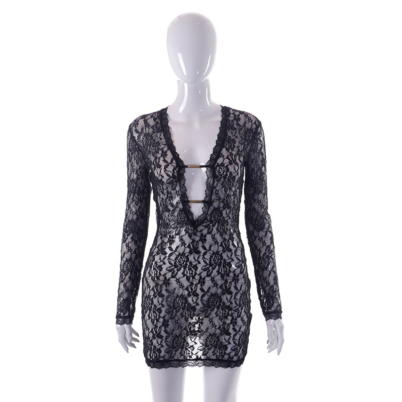 Be the first to review “Spring Summer New Women Lace Spliced Sleepwear Sexy Perspective Dress”