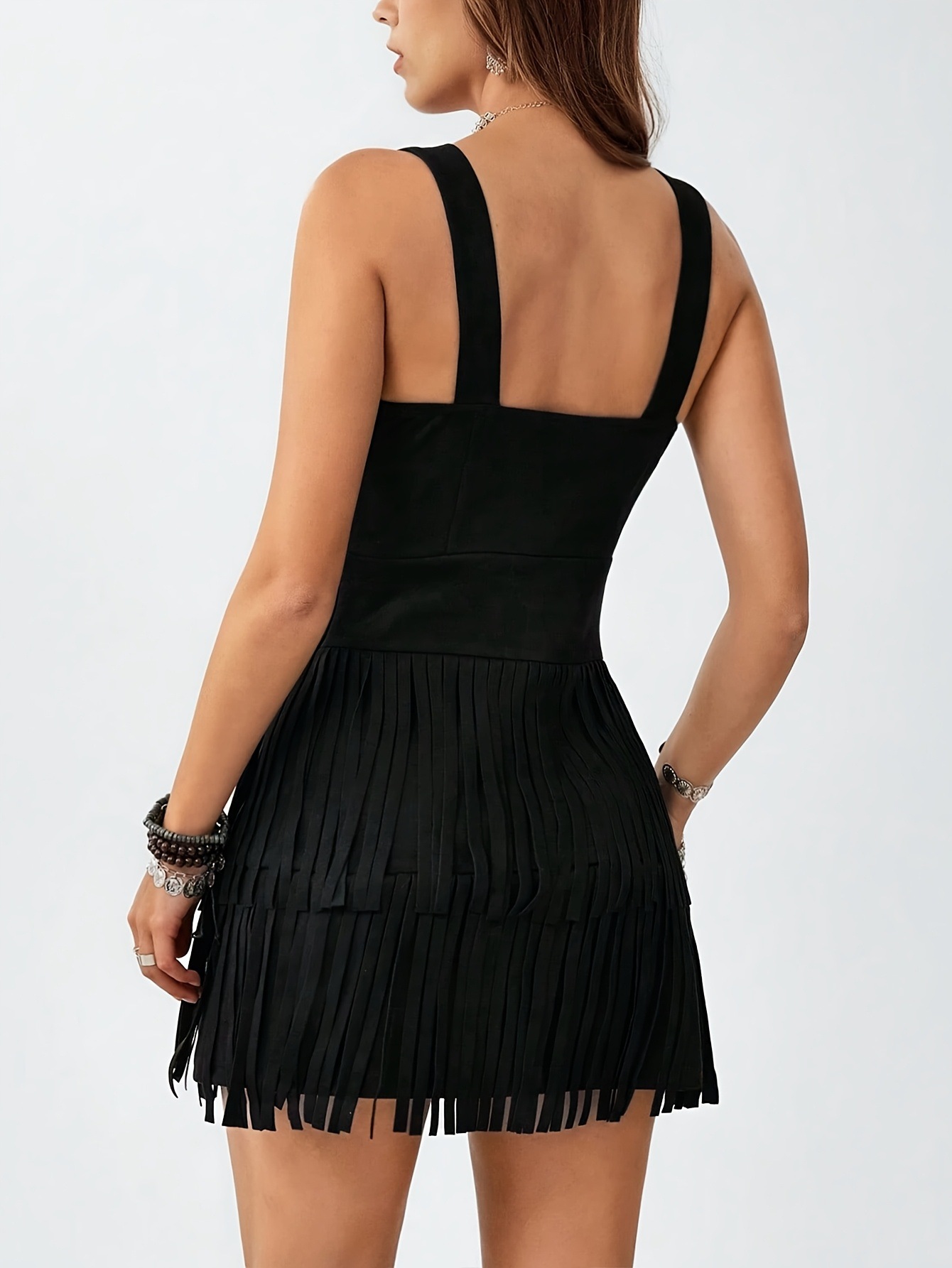 Be the first to review “Women’s Square Neck Double-Layer Tassel Hem Strapless Dress”
